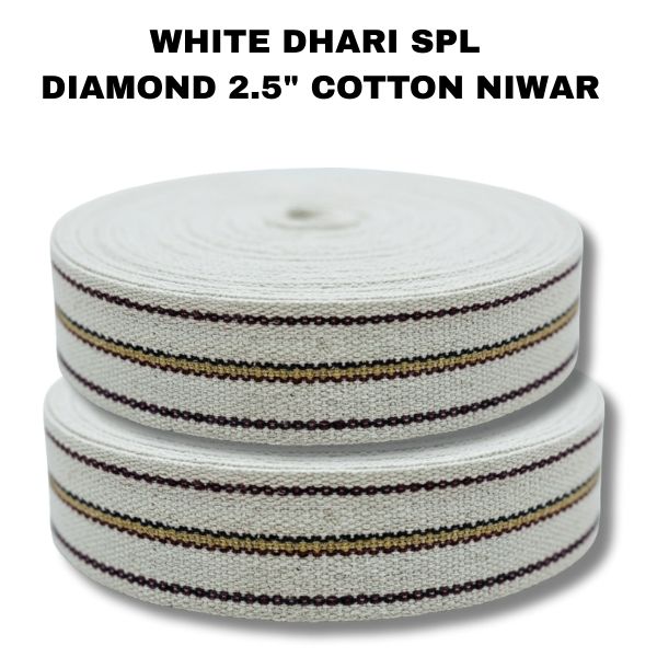 WHITE DHARI SPL DIAMOND 2.5" COTTON NIWAR